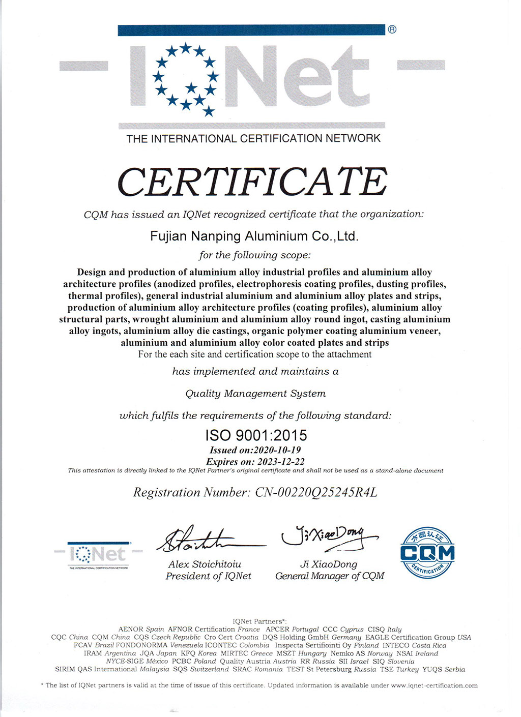 ISO9001IQNet證書